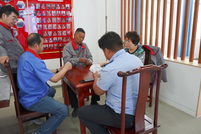 拔河赛场上参赛选手个个斗志昂扬、齐心协力、奋勇争先;乒乓球比赛你来我往,时而扣杀、时而抽球,精彩纷呈;乒乓球投篮形式新颖、机巧灵动、乐趣横生;跳绳比赛配合默契、上下跳跃、轻如飞燕;踢毽子比赛选手们轻抬脚尖,毽子如彩蝶般上下翻飞、轻盈跳跃、飘逸飞舞。象棋、掼蛋扑克对弈者运筹帷幄、斗智斗勇、难分伯仲。比赛现场既紧张又充满乐趣,气氛热烈,助威声、喝彩声此起彼伏,展现了积极健康、昂扬向上的精神风貌。
